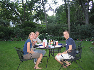 Dining El Fresco- and Mom missed it. Dang. Since cooking isn't easy without a kitchen, John offered to bring over his famous family favorites- Ham Balls. Yum. Dad thought it was a real treat compared to eating Chicken Pot Pies on the grill. (Mom will have to have rain check.)